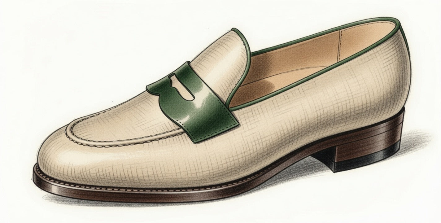 Designed for taking on the tropics, the Leopold is an ideal summer shoe. The structured linen body combined with a calfskin mask and trim creates a bold contrast for any summer look. An undeniable upgrade from the typical honey-tan derby or the atrocious sneaker-dress shoe hybrid, the loafer style of this far more elegant shoe fits perfectly in the slot of a more casual but dignified shoe style.