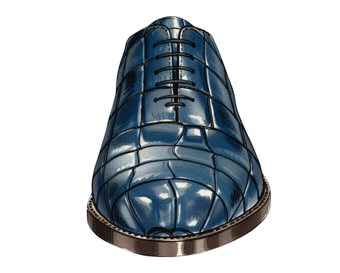 This whole cut oxford shoe's simplistic structure allows the gorgeous embossed crocodile skin to be on full display. The beautiful shape of each scale creating the quilted armor of the still-living, man-eating dragons of this world.